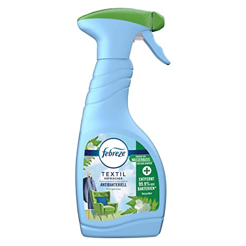 Febreze Textilfräschare spray (500 ml) Lenor antibakteriell morgondagg, textilspray tar bort 99,9 % av bakterier och lukter från icke-maskintvättbara textilier och lämnar en fräsch doft
