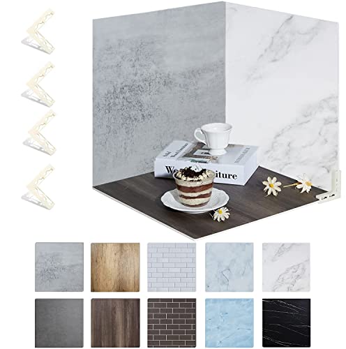 5 stycken dubbelsidiga fotografi bakgrund brädor med 10 mönster 40 x 40 cm (16 x 16 tum) fotobakgrund vit marmor träådring textur kit dubbelsidig mat platt lager vertikal med 4 klämmor