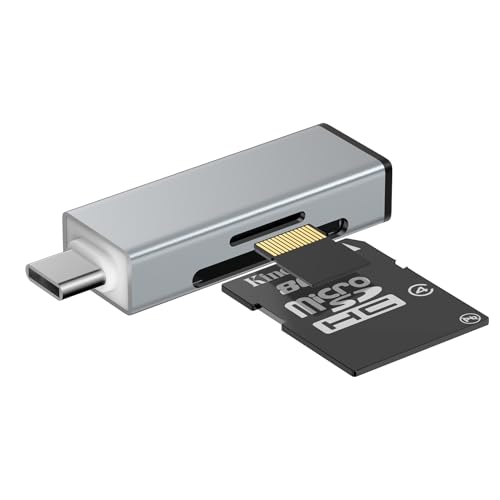 GlasFlength SD/Micro SD-kortläsare, USB C Card Reader i aluminium för TF/SDXC/SDHC/Micro SDXC/Micro SDHC 2-i-1 minneskortläsare OTG-adapter för bärbara telefoner (grå)