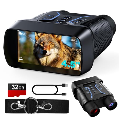 FIEGEl Nattvisionsglasögon, 4K UHD-video och 36 MP bild infraröd nattvisionskikare med 4,5 tums skärm, 4 500 mAh uppladdningsbart batteri, 32 GB TF-kort, 8 x digital zoom för camping (svart)