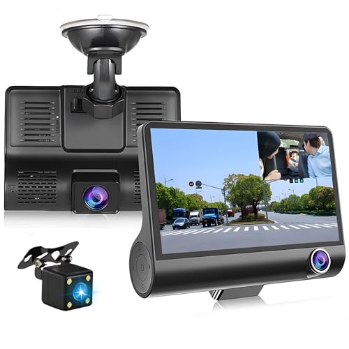 Hikity Dash Cam – uppgradering 3 kameror för bilkameror, fram, bak, i billoopning inspelning G-sensor Dash Cam 32 GB TF-kort