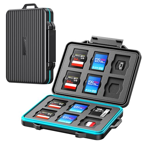 ORICO Minneskort skyddsfodral SD-minneskort fodral för 12 SD och 12 TF-kort, minneskortfodral vattentätt och dammsäkert med karbinhakar och klistermärken (PHCD-3)