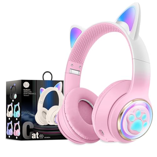 UtmäRkta TråDlöSa KattöRon Bluetooth-HöRlurar FöR Barn, Led-Upplysta Och Vikbara StereohöRlurar, StöDer Mikrofon/Tf-Minneskort FöR Smartphone/Iphone/Ipad/Laptop/Tv (Rosa)