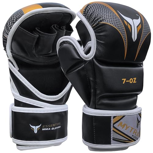 Mytra Fusion MMA-handskar med öppen handflata och justerbart handledsstöd, brottande sparringhandskar för burstrid, träning, stridssporter, kickboxning, Muay Thai, boxningssäck och kampsport (L/XL)