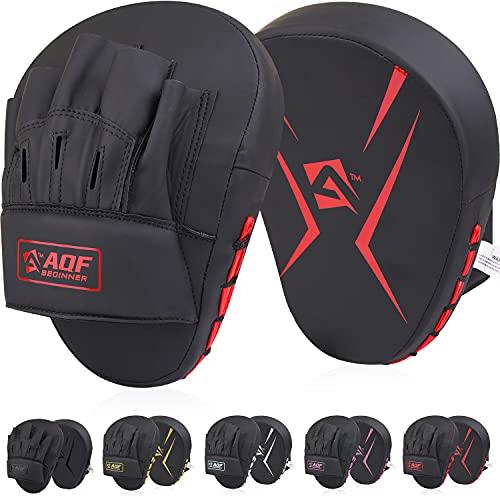 AQF Boxning Pads för träning - Punching Pads Muay Thai Rex Läder Kurvade Boxning Mitts, Kampsportskuddar, Fokusmittsar, Målträningshanddukar för MMA, Kickboxing, Karate & Martial Arts Pads (Röd)