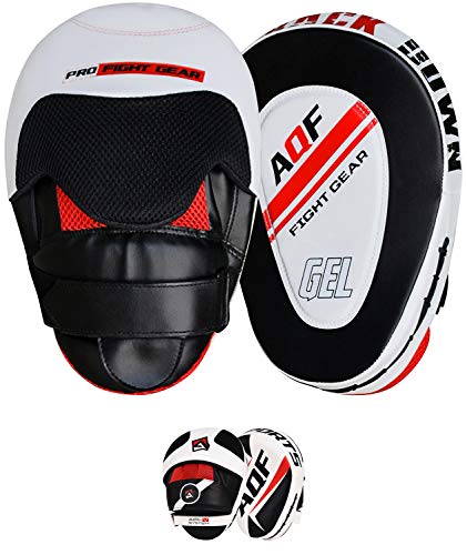 AQF Fokus Pads Rex Läder,Krok Och Jab Mitts,MMA Kick Boxning Muay Thai Sparring (Vit)