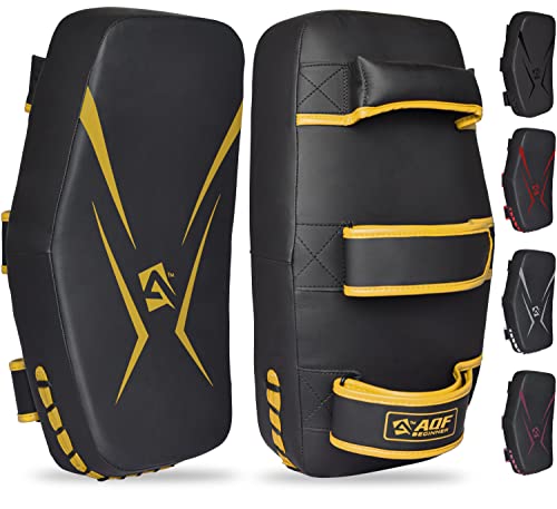 AQF thailändska pads för Kickboxing Muay Thai Pad med fast handtag grepp, Maya hide Leather Curved Strike Sköld för boxning MMA Martial Arts Taekwondo, Training Sports (Ena, Guld)