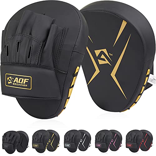 AQF Boxning Pads för träning - Punching Pads Muay Thai Rex Läder Kurvade Boxning Mitts, Kampsportskuddar, Fokusmittsar, Målträningshanddukar för MMA, Kickboxing, Karate & Martial Arts Pads (Guld)