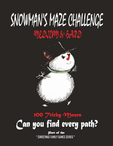 SNOWMAN'S MAZE CHALLENGE, Medium & Hard: 100 Tricky Mazes, Can you find every path? Part of the "Christmas Family Games Series"