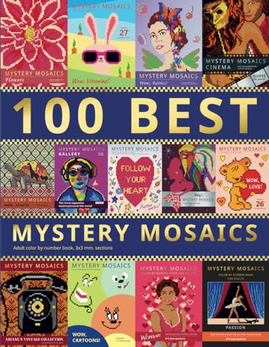 100 BEST MYSTERY MOSAICS. Adult color by number book, 3х3 mm. sections: 100 best pictures from the MYSTERY MOSAIC color by number series. Pixel coloring.