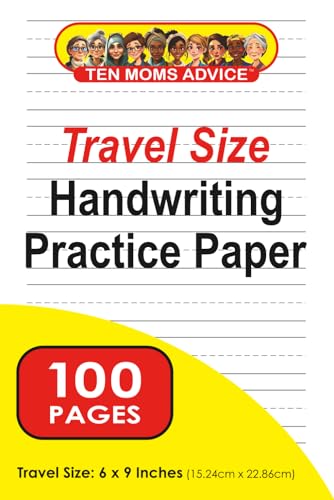 Handwriting Practice Paper TRAVEL SIZE 6" x 9": 100 Pages Blank Paper, Solid and Dotted Lines for printing or writing practice.: From the Ten Moms Advice Series