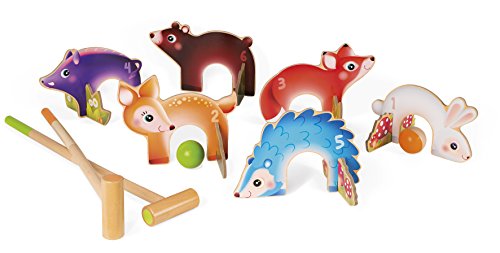 Janod - Forest Animals Croquet Wood Game - Outdoor Game - For children from the Age of 3 J03207, Multicolored