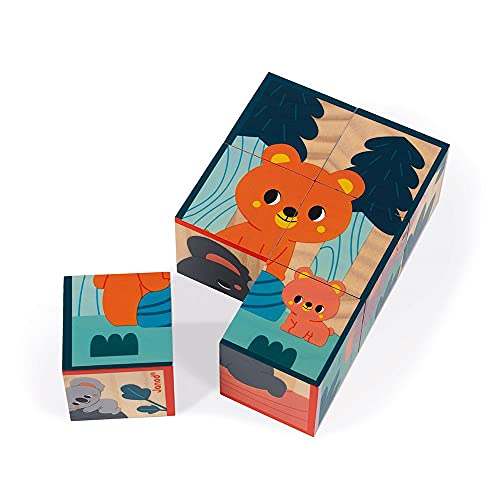 Janod - Childrens Wooden Blocks Animals Puzzle - Early-Learning and Early Years Toy - Educational Game - WWF Partnership - FSC-certified - Suitable for children from the age of 1 - J08622
