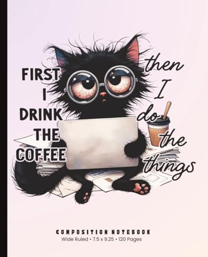 First I Drink the Coffee Then I Do the Things Black Cat Composition Notebook: Wide Ruled · 7.5 x 9.25 inches · 120 Pages