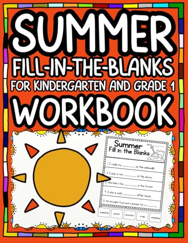 Summer Fill-in-the-Blanks Workbook: Summer Fill-in-the-Blanks Workbook for Kindergarten and Grade 1, Literacy centers, Seasonal review, Writing, Summer school