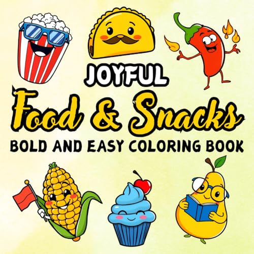 Joyful Food And Snacks Coloring Book: 50+ Bold And Easy Designs For Adults And Kids For Relaxation And Stress Relief, With Funny Fill-In-The-Blanks Poems (Large Print Bold & Easy Coloring)
