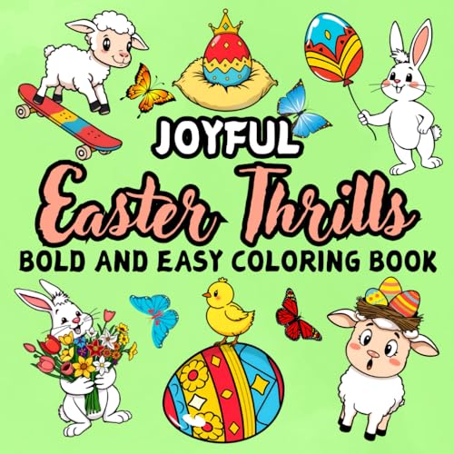 Joyful Easter Thrills Coloring Book: 50 Simple Bold And Easy Big Designs For Adults, Teens And Kids, With Funny Fill-In-The-Blanks Poems (Large Print Bold & Easy Coloring)
