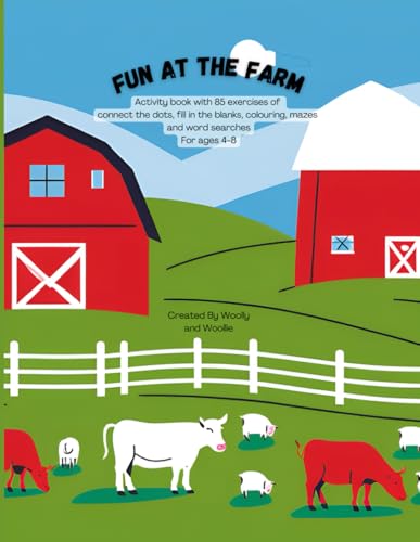Fun At The Farm: Activity book with 85 exercises of connect the dots, fill in the blanks, colouring, mazes and word searches! For ages 4-8.