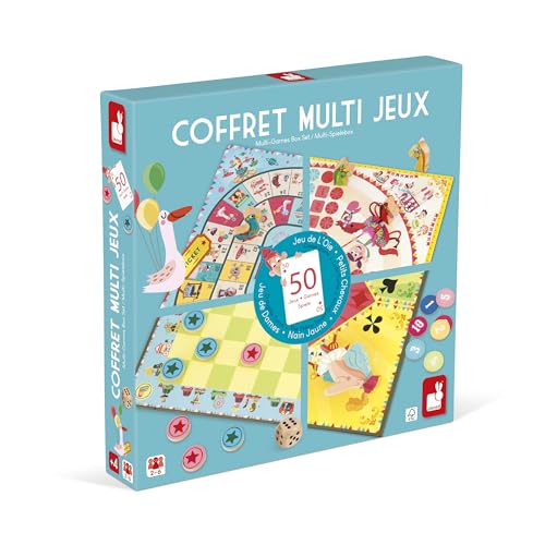 Janod - Carrousel Multi-Games Box Set - Classic Family Games - Draughts game, Ludo, Yellow Dwarf, 7 families, Goose game - For children from the Age of 5, J02742