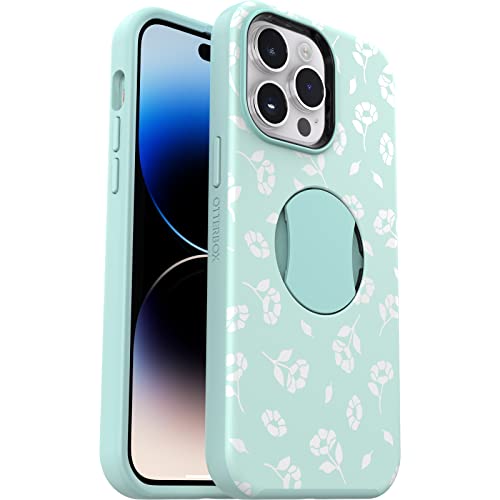 OtterBox Fodral för iPhone 14 Pro Max, från OtterGrip Symmetry-serien, inbyggt grepp, tunt fodral, fäster till MagSafe, upphöjda kanter skyddar kamera och skärm (Poppies by the sea, blå)