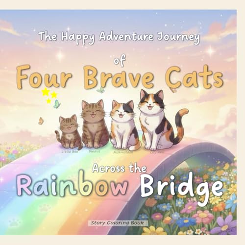The Happy Adventure Journey of Four Brave Cats Across the Rainbow Bridge: A Heartwarming Story Coloring Book for Kids and Cat Lovers