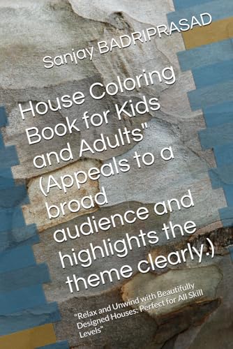 House Coloring Book for Kids and Adults" (Appeals to a broad audience and highlights the theme clearly.): "Relax and Unwind with Beautifully Designed Houses: Perfect for All Skill Levels"