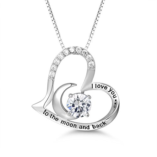 Fint halsband i sterlingsilver, med hänge "I Love You To The Moon and Back", zirkon, hjärta berlock för kvinnor, 45,7 cm kedja e Sterling silver, colore: Silverfärgad halskedja, cod. PSN002a