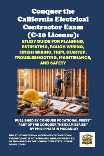 Conquer the California Electrical Contractor Exam (C-10 License): Study Guide for Planning, Estimating, Rough Wiring, Finish Wiring, Trim, Startup, Troubleshooting, Maintenance, and Safety