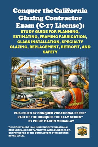 Conquer the California Glazing Contractor Exam (C-17 License): Study Guide for Planning, Estimating, Framing Fabrication, Glass Installation, Specialty Glazing, Replacement, Retrofit, and Safety