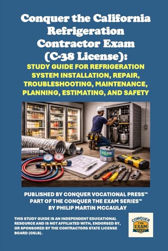 Conquer the California Refrigeration Contractor Exam (C-38 License): Study Guide for Refrigeration System Installation, Repair, Troubleshooting, Maintenance, Planning, Estimating, and Safety