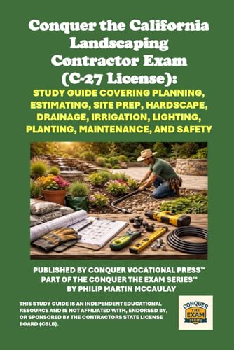 Conquer the California Landscaping Contractor Exam (C-27 License): Study Guide Covering Planning, Estimating, Site Prep, Hardscape, Drainage, Irrigation, Lighting, Planting, Maintenance, and Safety