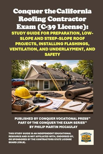 Conquer the California Roofing Contractor Exam (C-39 License): Study Guide for Preparation, Low-Slope and Steep-Slope Roof Projects, Installing Flashings, Ventilation, and Underlayment, and Safety