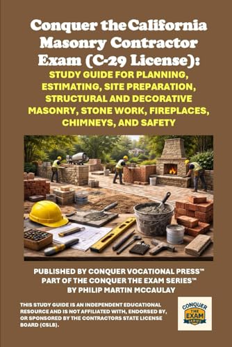 Conquer the California Masonry Contractor Exam (C-29 License): Study Guide for Planning, Estimating, Site Preparation, Structural and Decorative Masonry, Stone Work, Fireplaces, Chimneys, and Safety