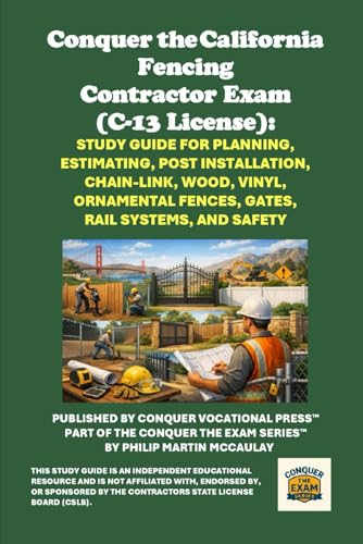 Conquer the California Fencing Contractor Exam (C-13 License): Study Guide for Planning, Estimating, Post Installation, Chain-Link, Wood, Vinyl, Ornamental Fences, Gates, Rail Systems, and Safety