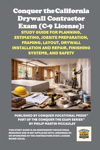 Conquer the California Drywall Contractor Exam (C-9 License): Study Guide for Planning, Estimating, Jobsite Preparation, Framing, Layout, Drywall Installation and Repair, Finishing Systems, and Safety