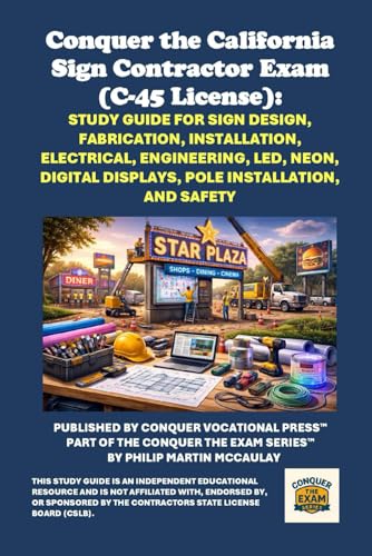 Conquer the California Sign Contractor Exam (C-45 License): Study Guide for Sign Design, Fabrication, Installation, Electrical, Engineering, LED, Neon, Digital Displays, Pole Installation, and Safety