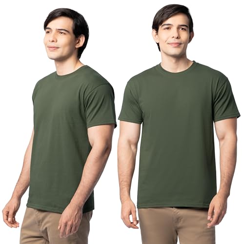 Fruit of the Loom Eversoft bomull för män, kortärmad, vanlig och stor t-shirt, Crew - 2-pack - militärgrön, 3XL