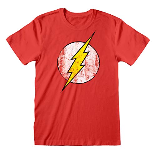 DC Comics The Flash nödställd logo dam pojkvän passform t-shirt | officiella varor | S-XXL, lös säckig överdimensionerad rund hals grafisk topp, födelsedagspresent idé för damer, Röd, XL