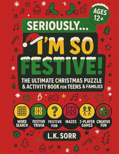 Seriously I'm So Festive: The Ultimate Christmas Puzzle & Activity Book for Teens & Families | Fun Holiday Word Searches, Mazes, Trivia, Coloring, Riddles & 2-Player Games