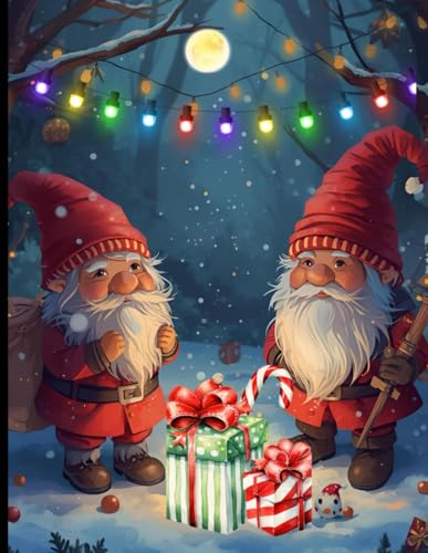 Notebook: Christmas Gnomes in the Enchanted Forest: Journal: Festive Lined Writing Book with Cute Holiday Gnomes, Gifts, and Twinkling Lights-162 pages (81/2 by 11))
