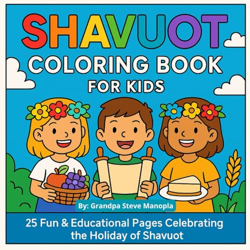 Shavuot Coloring Book for Kids: 2 - 8.5 x 8.5 in. 25 Fun & Educational Pages to Celebrate the Jewish Holiday of Shavuot with Torah, Dairy Treats, and Flower Crowns