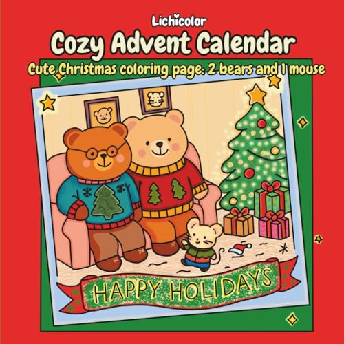 Cozy Advent Calendar: Cute Christmas Stories Coloring Pages with 2 Bears and 1 Mouse, 24 days before the big day: Holiday Coloring Book for Kids, ... Friends and Escenes Festive Christmas Fun