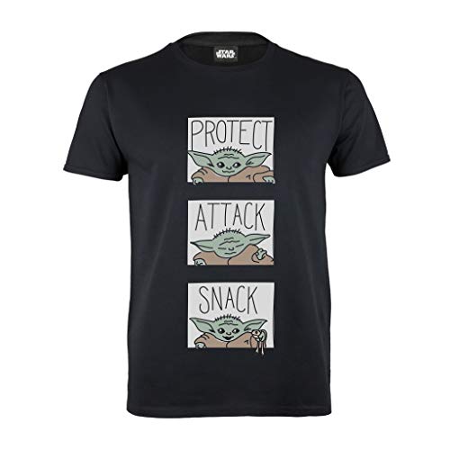 Star Wars The Mandalorian The Child Protect Attack Snack Girls t-shirt | officiella varor | åldrar 5-15, barnkläder, Baby Yoda Kids Top, Tween & Teen Sizes, födelsedagspresentidé, Svart, 7-8 År