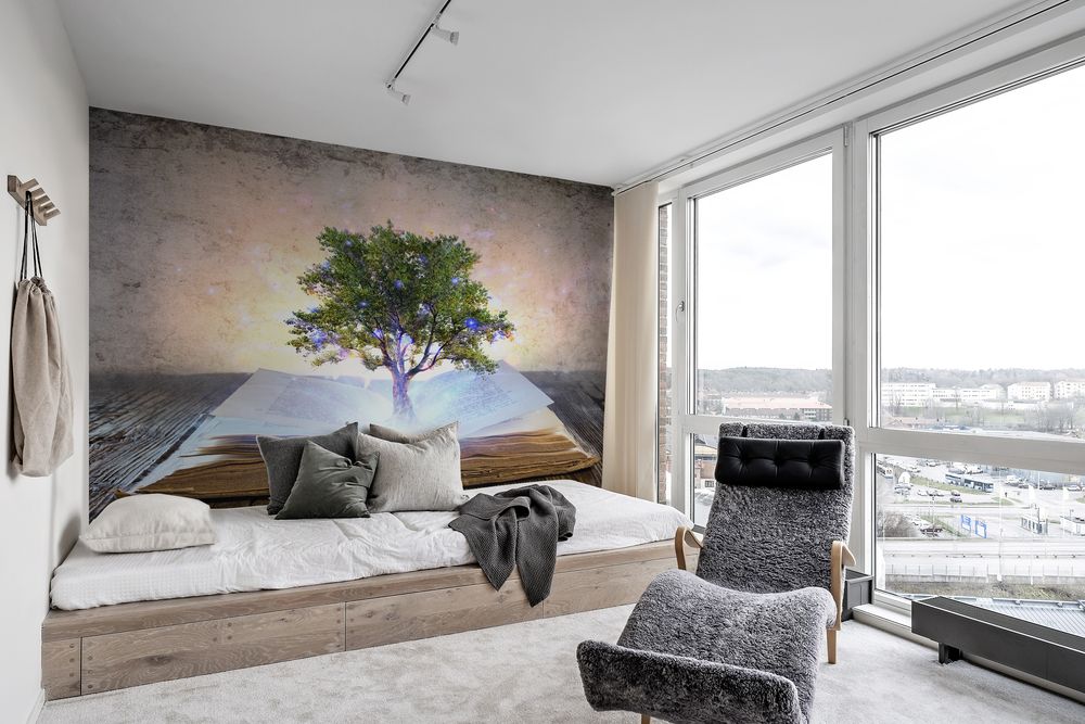 Fototapet -Tree Growing From The Old Book - Shining And Magic Lights - Tonårsrum - Scandiwall - Fantasy