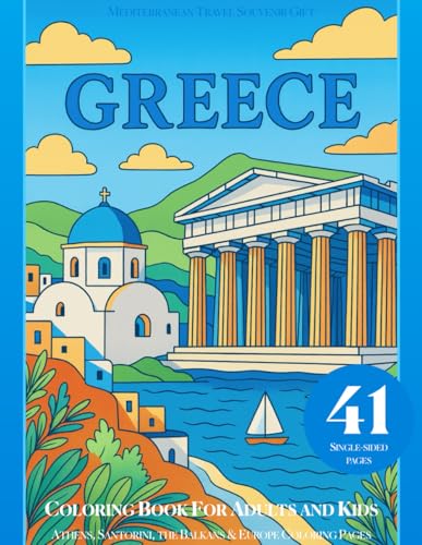 Greece Coloring Book for Adults and Kids: Mediterranean Travel Souvenir Gift, Athens, Santorini, the Balkans & Europe Coloring Pages
