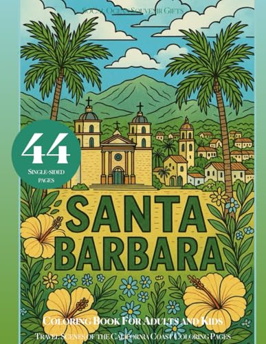 Santa Barbara Coloring Book for Adults and Kids: SoCal Ocean Souvenir Gifts & Travel Scenes of the California Coast Coloring Pages