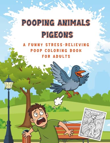 Pooping Animals – Pigeons. A Funny Stress-Relieving Poop Coloring Book for Adults: The Ultimate Gag Gift with Ridiculous Scenes, Sarcastic Quotes, and Comedic Catastrophes.