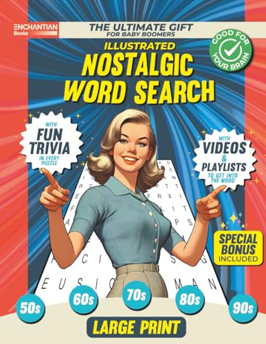 Nostalgic Word Search: The Ultimate Gift for Baby Boomers | Special Puzzles with Videos, Fun Trivia, Nostalgic Illustrations & Memory Prompts | Large Print Word Search from 1950s–1990s