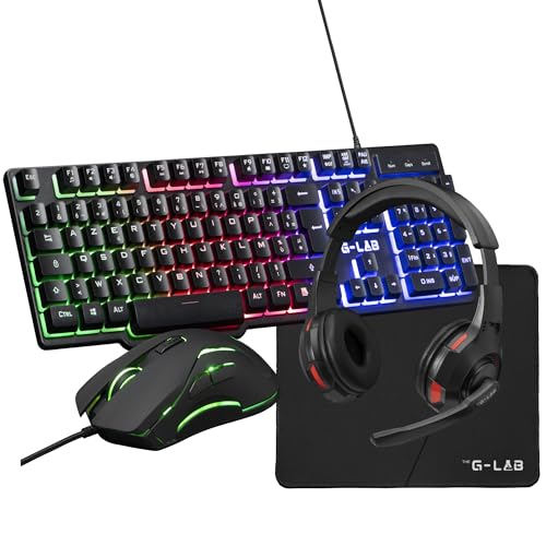 THE G-Lab Combo SULFUR - 4-i-1 spelpaket - RGB-gamingtangentbord, 3 600 DPI-spelmus, RGB-spelheadset, halkfri matta - komplett setup PC, PS4, PS5, Xbox - Fransk AZERTY-layout