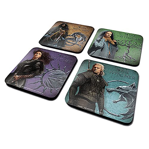 The Witcher uppsättning av 4 dryckesunderlägg (legendarisk design) - officiell vara
